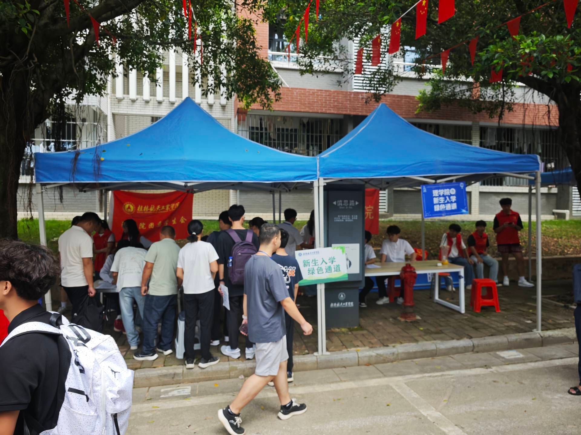 报到当天,校园内人头攒动,气氛热烈而秩序井然。在报到处,志愿者们耐心协助新生办理入学手续,及时解答各类疑问;校园主干道和宿舍区随处可见身着红色马甲的志愿者身影,他们主动上前分担行李、指引路线,并贴心介绍校园设施与生活注意事项。学生党员还专门设立“党员咨询岗”,除参与基础引导工作外,更为新生提供学业规划与校园适应等深度咨询服务,充分发挥先锋模范作用。