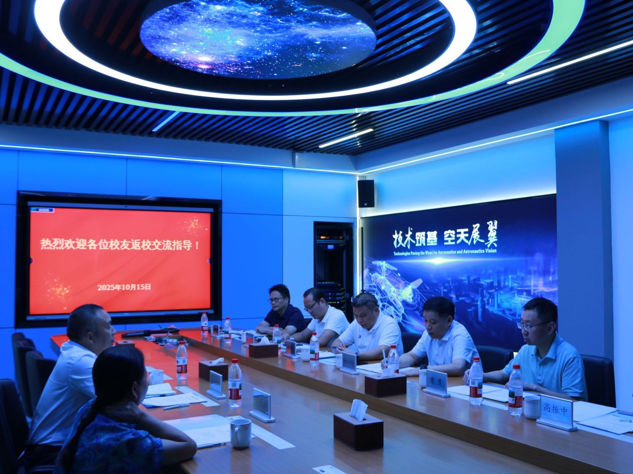 座谈会在擎天楼C座三楼学术交流室举行,孙山林、樊勇以及相关部门负责人参加交流。孙山林在会上表达了学校在测控通信、无人测控等方面加强校企合作的意愿。邓建华回顾了在桂航的求学和成长经历,对母校的悉心培养表达诚挚谢意,并围绕无人机飞行稳定性、数据传输效率等技术细节和参会人员细致探讨,建议学校持续探索无人机在航天辅助任务、民用应急等领域的应用创新。经过深入交流讨论,双方就低空经济、人工智能等方面加强交流合作达成意向。