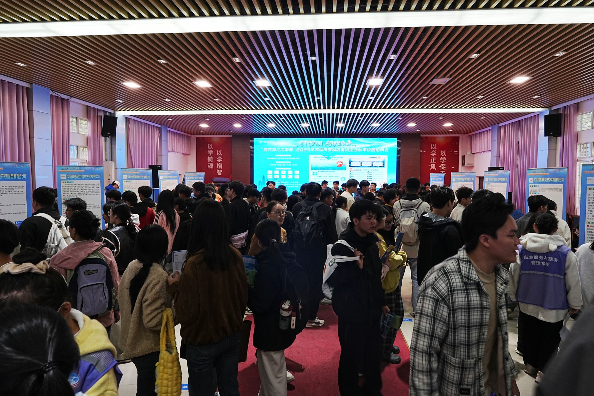 10月22日上午,航空服务与旅游管理学院联合深圳市罗湖区人力资源和社会保障局,在北校区招聘大厅举办“小精专优”2025年秋季就业双选会。学校党委副书记、纪委书记吴江萍亲临现场指导,学院领导班子、毕业班辅导员及2026届毕业生参加活动。