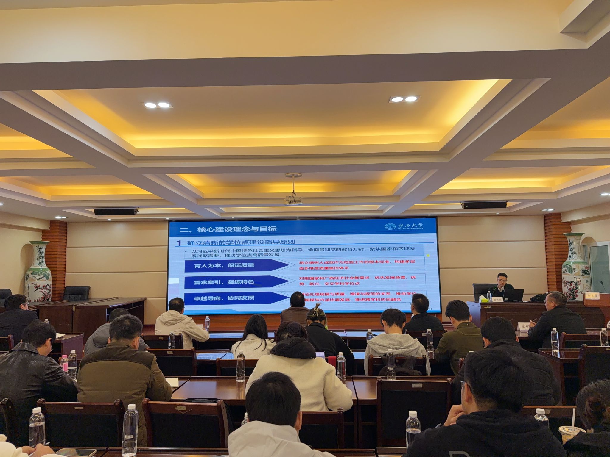 讲座中,彭林欣教授围绕“建设基础与发展格局”“核心建设理念与目标”“关键建设任务与实践举措”“健全保障机制与建设实施”四大板块,分享了广西大学在学位点建设中的实践成果与创新思路,内容兼具理论高度与实操指导性。