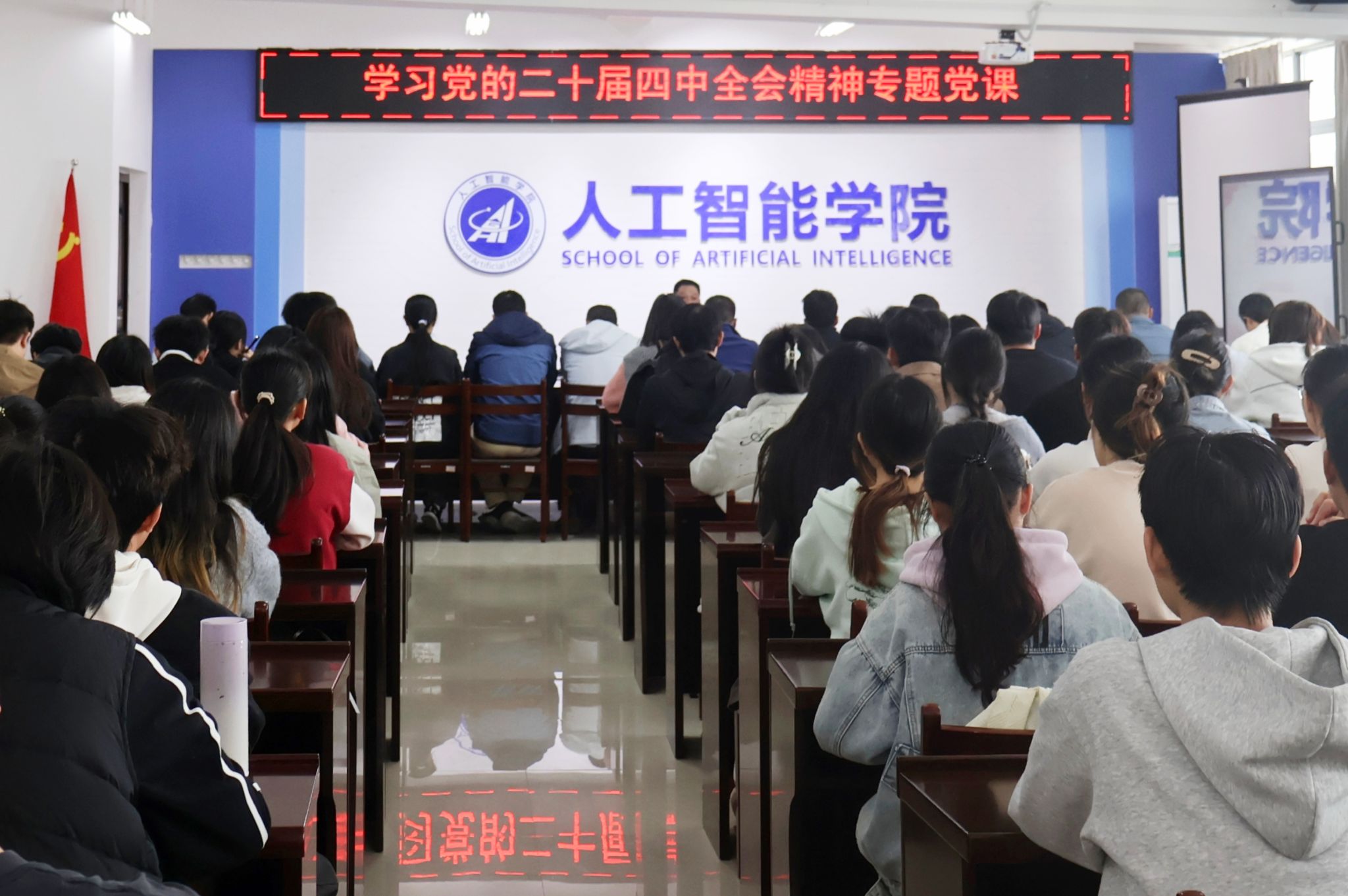 为推动党的二十届四中全会精神在师生群体中落地生根,引导师生精准把握全会核心要义,将个人成长融入国家发展大局,11月25日下午,校党委副书记孙山林为人工智能学院师生讲授专题党课。党课由学院党委书记主持,学院党委委员、教师代表、学生党支部书记、全体学生党员参加学习。