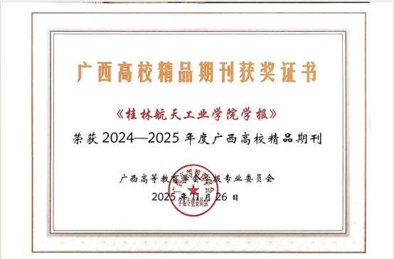 此次获评精品期刊,不仅彰显了《桂林航天工业学院学报》在学术出版方面的专业实力,也反映了桂林航天工业学院在科研与学术建设方面的扎实积累。这一荣誉将有助于进一步提升学报的学术影响力,激励编辑部持续提高办刊水平,为学术繁荣与学科发展贡献更大力量。