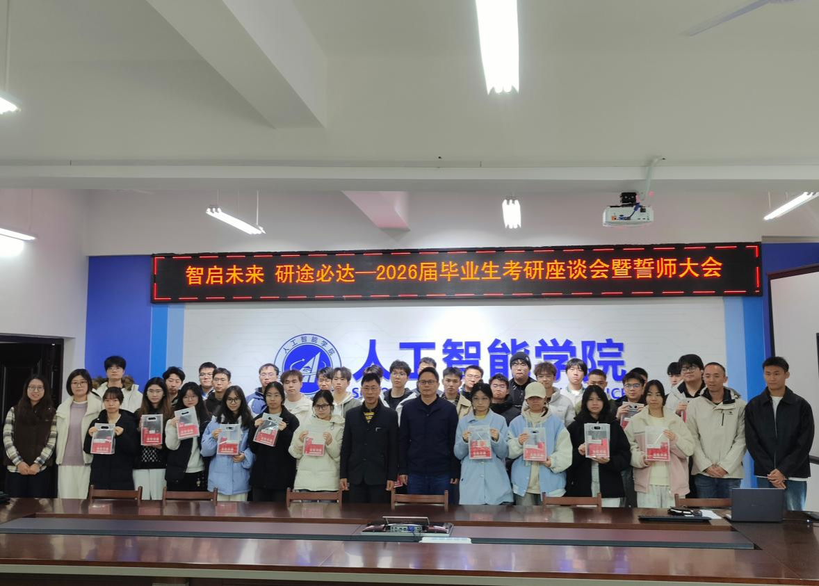 为帮助考研学子坚定备考信心,明晰冲刺方向。12月10日,人工智能学院举行2026届毕业生考研交流暨誓师大会。学院负责人、团委书记、指导教师、毕业班辅导员及全体考研学生参会。