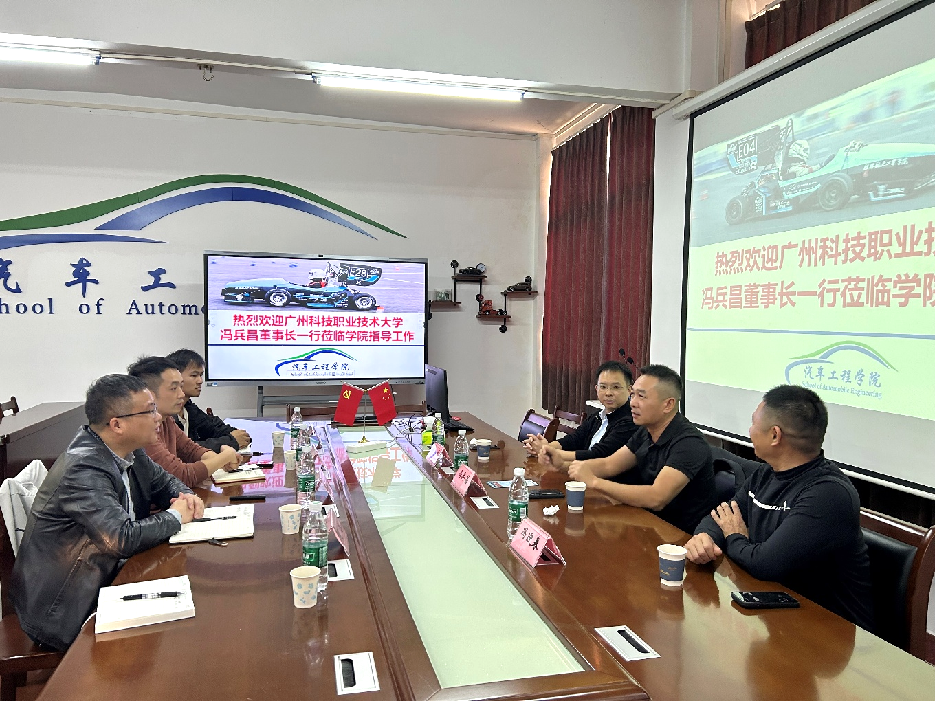 2025年12月19日,广州科技职业技术大学董事长冯兵昌一行到访我校汽车工程学院,围绕学科专业建设、应用型人才培养、大学生创新团队建设三大核心议题开展深度交流座谈。汽车工程学院领导班子、学科带头人及骨干教师代表参加座谈。