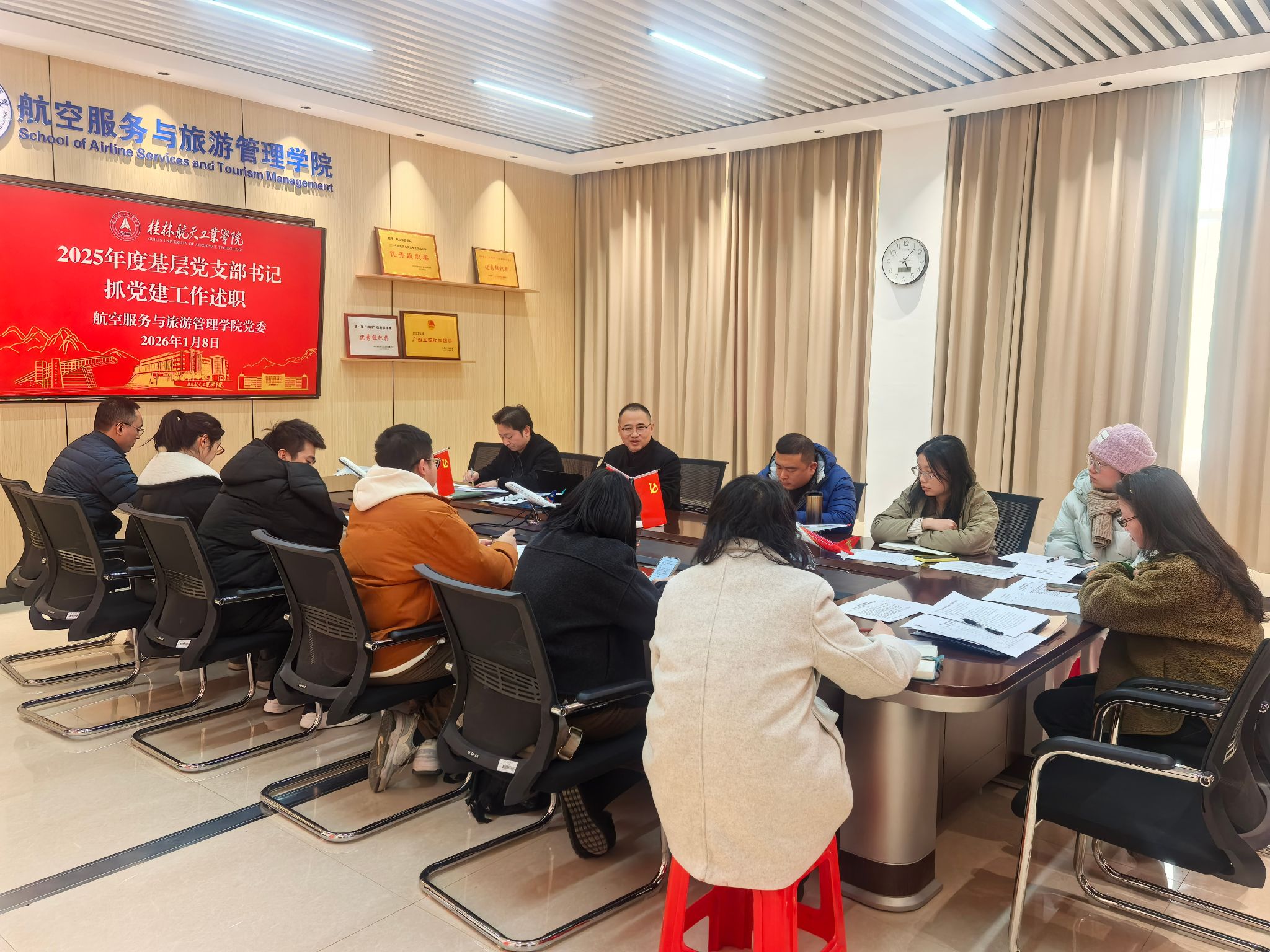 为深入贯彻落实学校党委工作部署,全面检验基层党建工作成效,1月8日,航空服务与旅游管理学院在探天楼C208组织召开2025年度基层党支部书记抓党建工作述职评议会。学院党委书记、副书记、党委委员出席会议,各支部书记、支委及学生党员代表参加会议。会议由学院党委副书记主持。