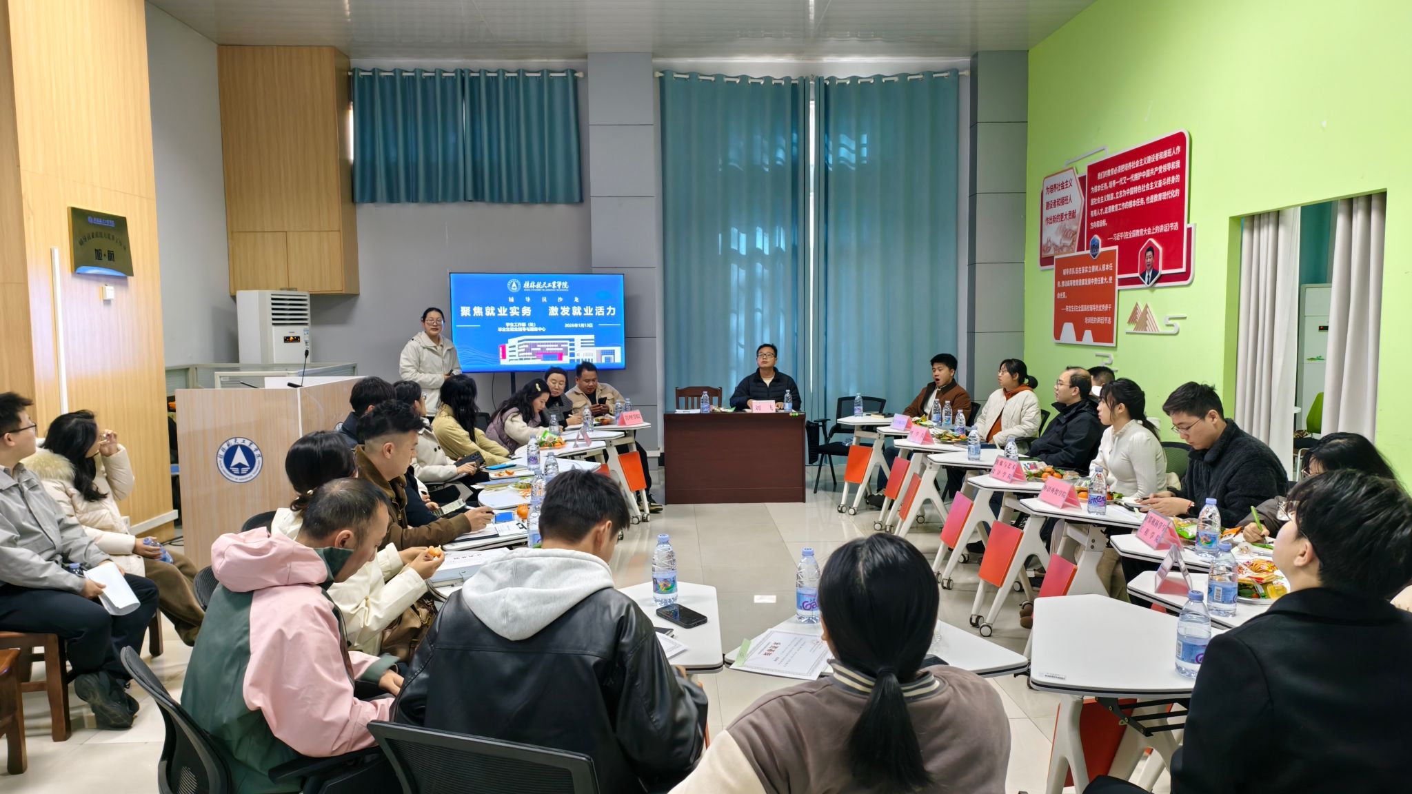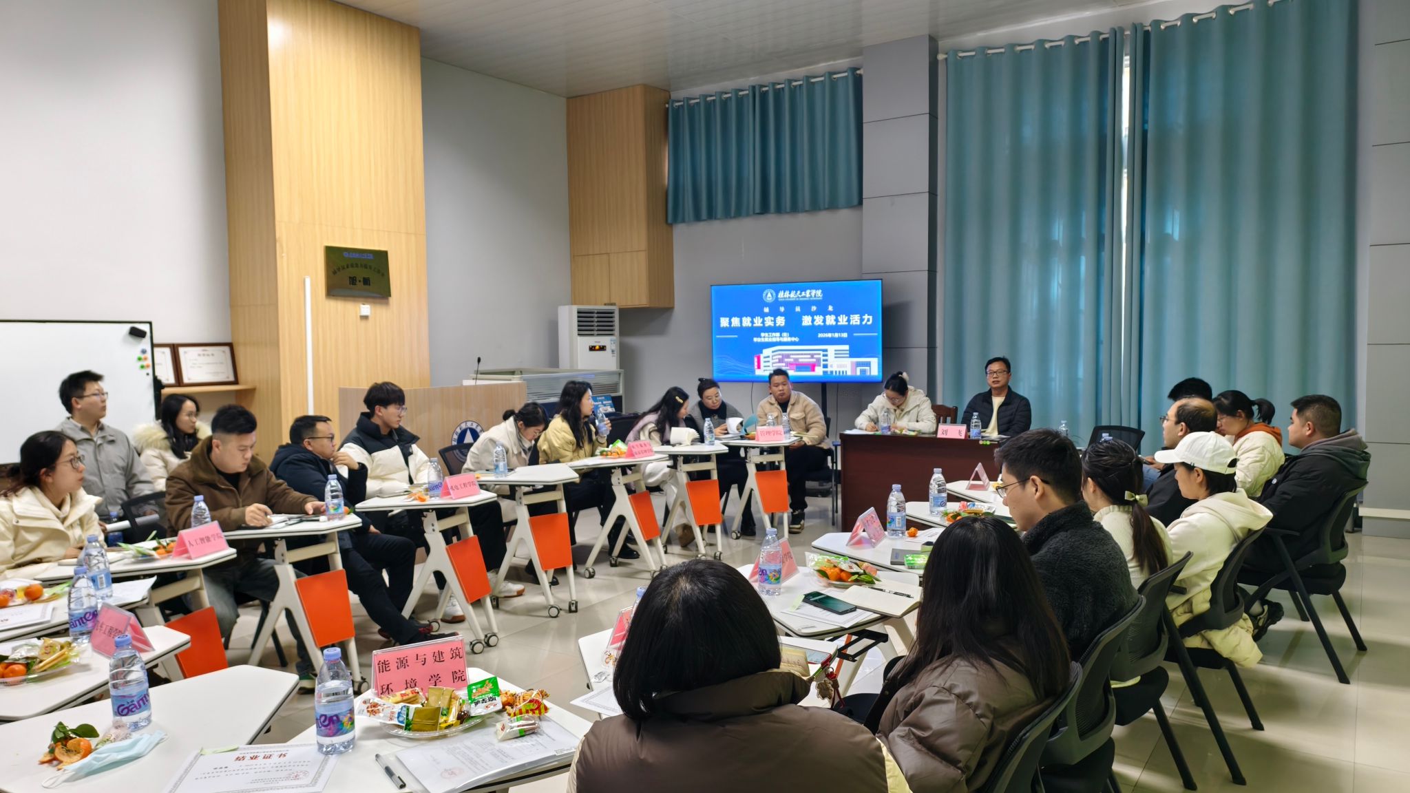 为全面提升就业服务质效,全力促进高质量充分就业,1月13日,学生工作部(处)主办的“聚焦就业实务 激发就业活力”主题沙龙活动在北校区辅导员发展研究中心顺利举行。学工部(处)负责人、2026届毕业班辅导员及就业指导与服务中心全体人员参加活动。