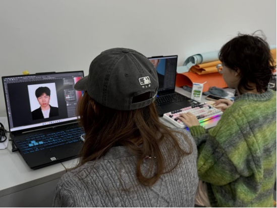 本次活动构建了“一站式”服务闭环:从前期的登记引导、着装搭配建议、仪容仪表整理,到中期的布光调试、姿态指导,再到后期的精细化修图,志愿者们对每一个环节都进行了严格把控,对每一位前来拍照的师生都展现出严谨的专业态度和饱满的服务热情。针对简历照片对职业气质的特殊要求,团队不仅在现场拍摄中精益求精,更在后期制作中运用专业软件进行肤色校正、质感磨皮及多底色背景合成处理。最终,一张张兼具职业感与亲和力的电子证件照通过邮件精准送达学生手中,显著提升了求职材料的视效质量。