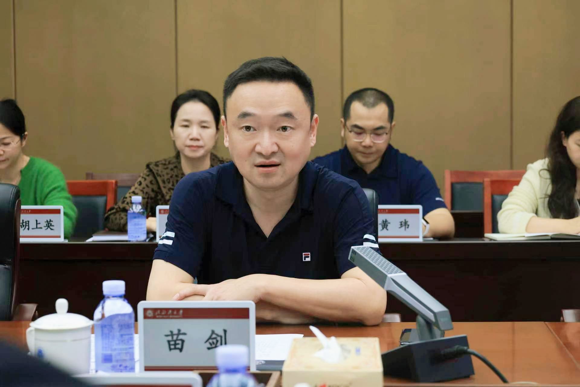 北部湾大学党委书记、校长苗剑对我校考察组一行的到来表示热烈欢迎,他简要介绍了北部湾大学近年来的办学情况及未来发展规划。他表示,两校同为服务地方发展的高校,肩负着助力地方经济社会高质量发展的共同使命,希望以此次考察交流为契机,进一步深化双方合作,拓宽合作领域、丰富合作内涵,携手走出高水平应用型大学发展之路,为地方经济社会发展注入更多高校动能。