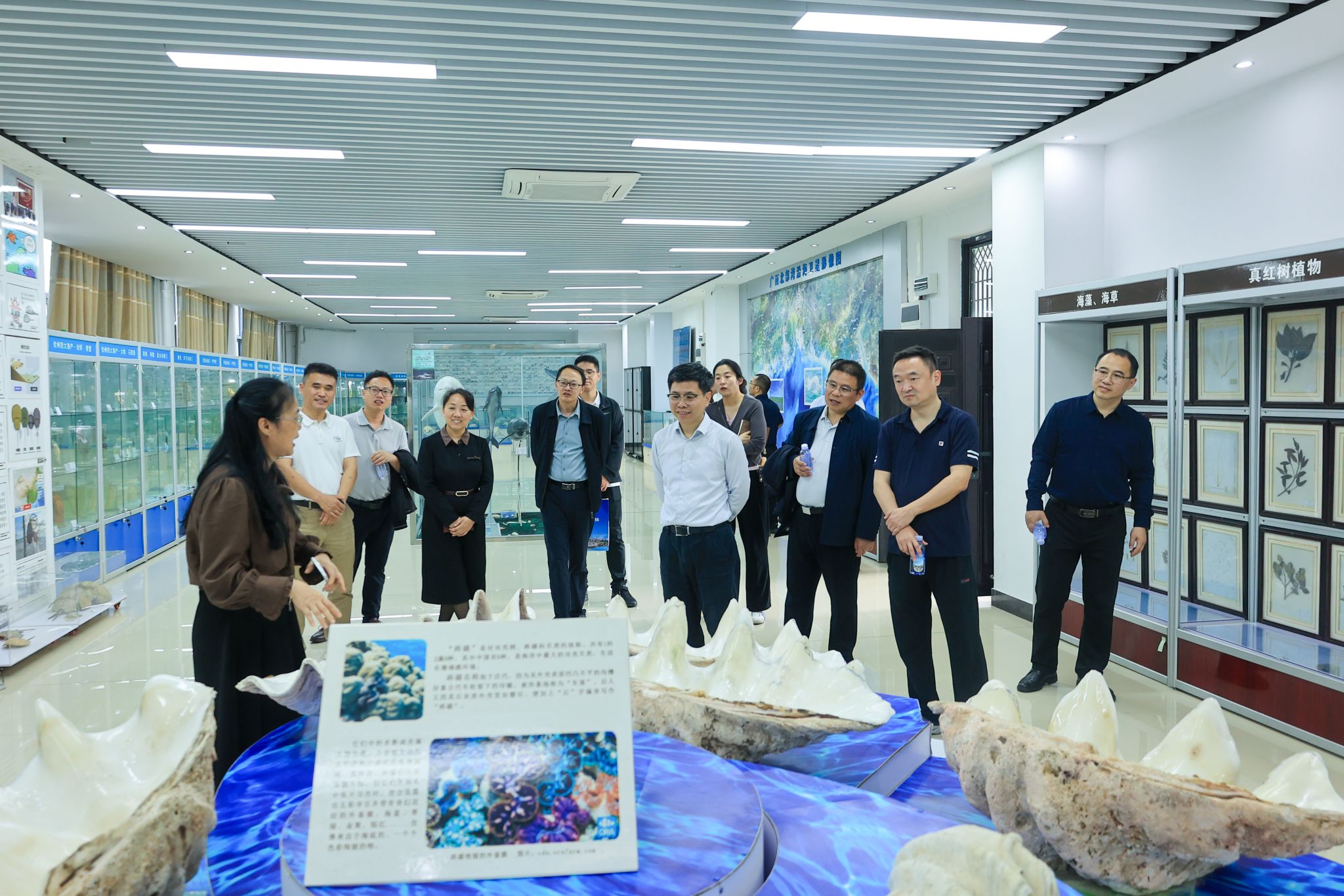 会前,北部湾大学党委书记、校长苗剑,副校长、组织部部长张海燕陪同调研组一行,实地参观了北部湾大学校史馆、海洋文化博物馆、海洋生物标本馆、航海模拟器一体化实验室、船海水动力实验室、红树林生态修复实验室、坭兴陶展示中心等处,详细了解了北部湾大学的办学历史、发展历程、办学特色及海洋文化建设成果。