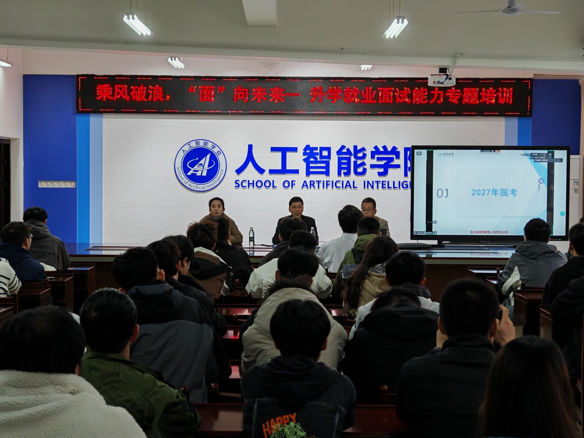 此次专题辅导培训内容丰富、针对性强、实用性高,切实回应了学生在升学就业关键期的迫切需求,有效提升了同学们的面试应试能力与政策解读能力。下一步,人工智能学院将持续关注并精准对接学生升学就业需求,整合优质教育资源,常态化开展升学就业指导系列活动,精准破解备考就业难题,全力助力学生实现高质量升学与充分就业。