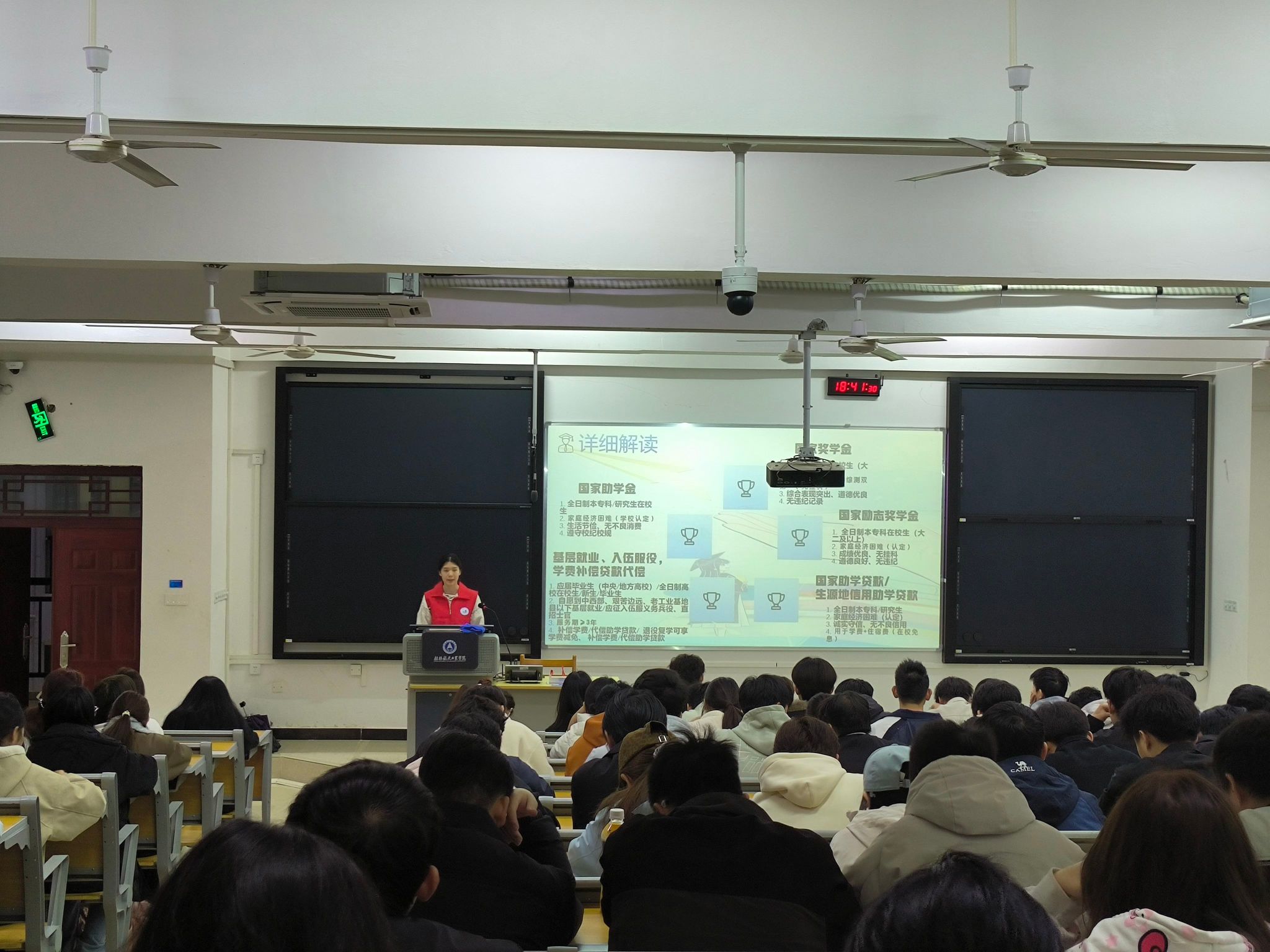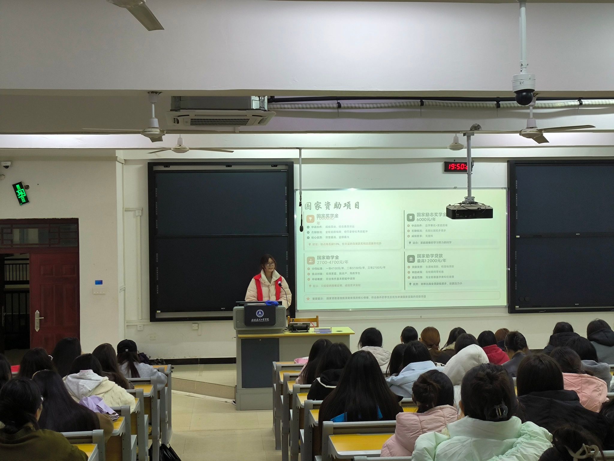 同日晚间,在学生资助政策宣传大使院级选拔赛中脱颖而出的张佩瑜、黄尧、王依婷、俞文娟四位同学,在探天楼B201、B401教室给600余名大一新生开展资助政策、诚信教育、反诈宣传主题宣讲。宣讲过程中,四位宣传大使结合自身理解,用通俗易懂的语言、贴近学生的案例,详细解读了国家及学校的各项资助政策,清晰讲解了资助体系的具体内容、申请流程及帮扶作用,同时普及了诚信还款、防范校园诈骗等相关知识,让新生们全面了解资助政策、深刻体会党和政府以及学校对青年学生的深切关怀,进一步激发了同学们感恩奋进、传递温暖的责任意识。