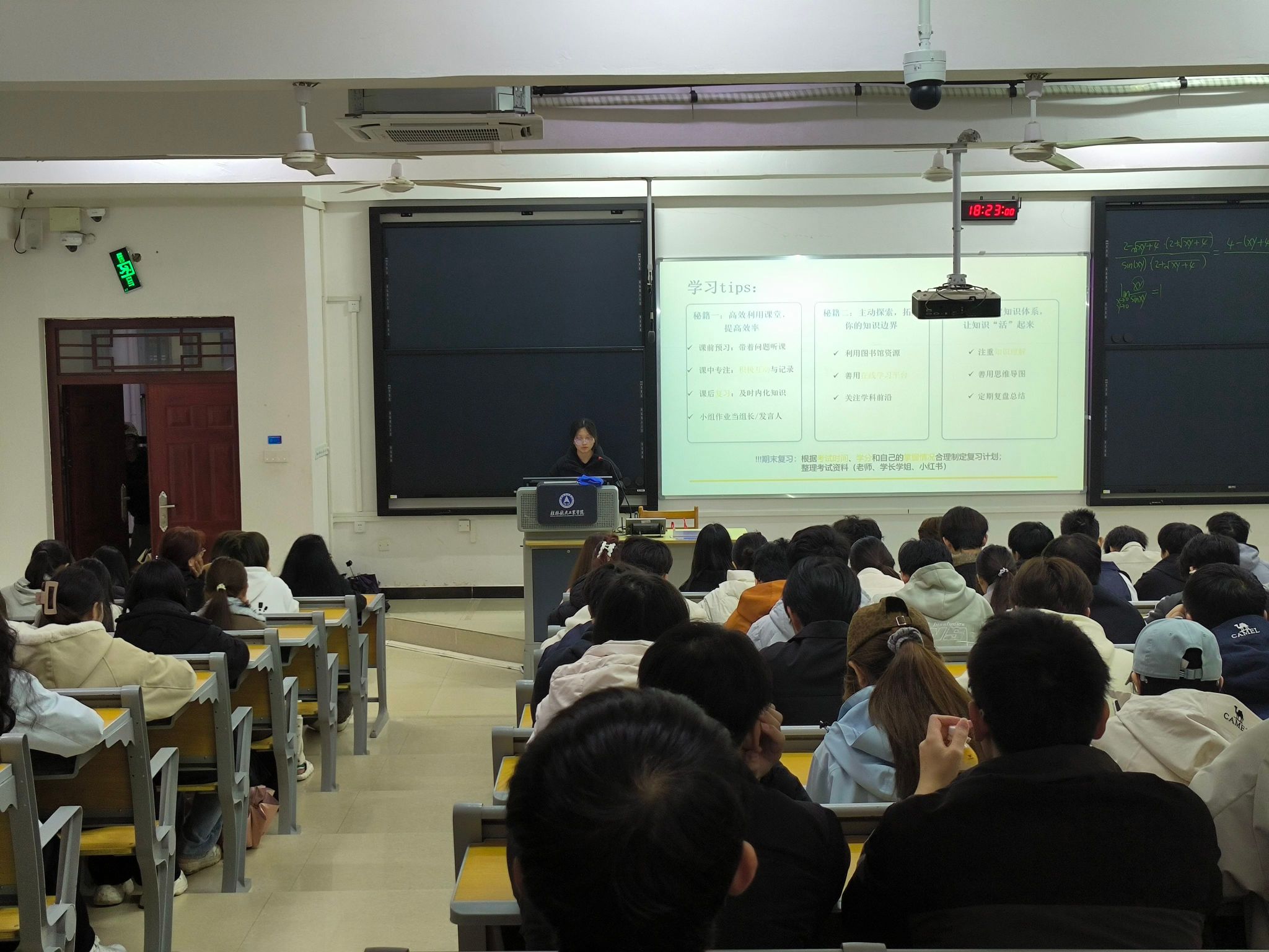 3月22日晚,学院在探天楼B201、B401教室举办“我与国奖学生面对面”主题报告会,活动邀请2024-2025学年国家奖学金获得者林诗怡、易麒,以及国家励志奖学金获得者黄尧、俞文娟担任主讲人,共有600余名同学到场聆听。四位同学结合自身成长历程,分享了自己在求学路上勤学笃行的奋斗故事,详解了合理规划时间、高效备考、平衡学业与实践的方法技巧,用真实经历传递榜样力量,用真诚分享点燃青春梦想。现场氛围热烈,同学们认真聆听、积极互动,纷纷表示将以榜样为标杆,把报告会的启发转化为脚踏实地的行动,勇于突破自我、追逐更高目标。