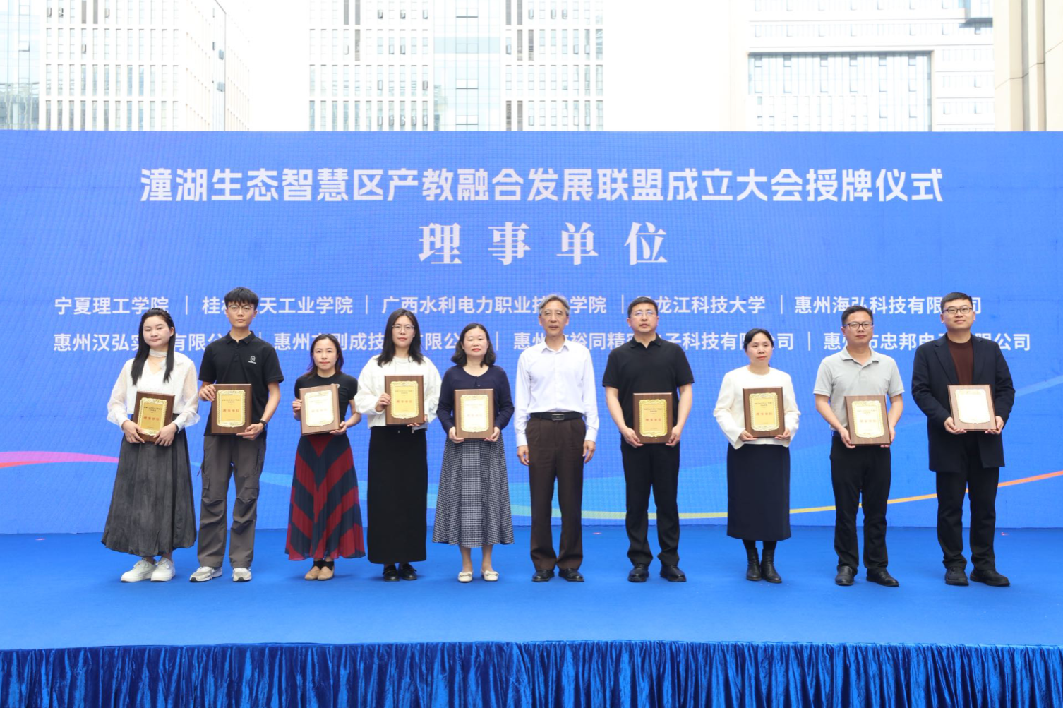 在潼湖生态智慧区产教融合发展联盟成立大会上,学校受聘成为理事单位。学生工作部(处)相关负责人积极宣传学校的办学定位、人才培养特色以及优秀毕业生服务惠州当地企业的典型案例。他提出,学校开设的机械、电子、服务类等专业与惠州的产业发展高度契合,希望联盟成员单位在学生就业、实习实训、专业建设、科研项目等方面支持学校发展。
