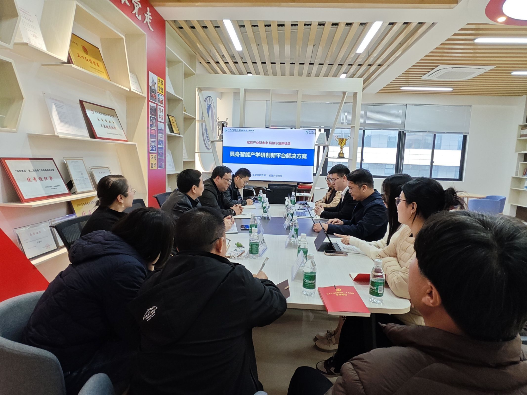 洽谈会上,杨小劲与黄理明分别介绍了各自发展概况、专业建设特色及人才培养与产业需求方向,为后续合作奠定了良好基础。随后由陈杰作《具身智能产学研创新平台解决方案》的专题报告,结合行业发展趋势,详细阐述了具身智能领域的产学研融合路径与平台建设思路,为校企合作提供了专业指引。