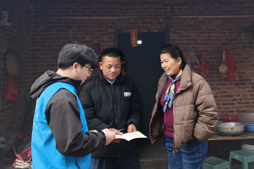 寒假期间,学院资助宣传大使王悦、庞岩松、许忠炫3位同学,怀揣责任与使命,分别奔赴河南省商丘市民权县程庄镇杨卓武村、河北省张家口市蔚县南杨庄乡东大云疃村、代王城镇张中堡村、李家碾村,以及广西壮族自治区钦州市灵山县那隆镇磨刀垌村等地,开展“入户传政策,助梦暖人心”主题宣讲活动。