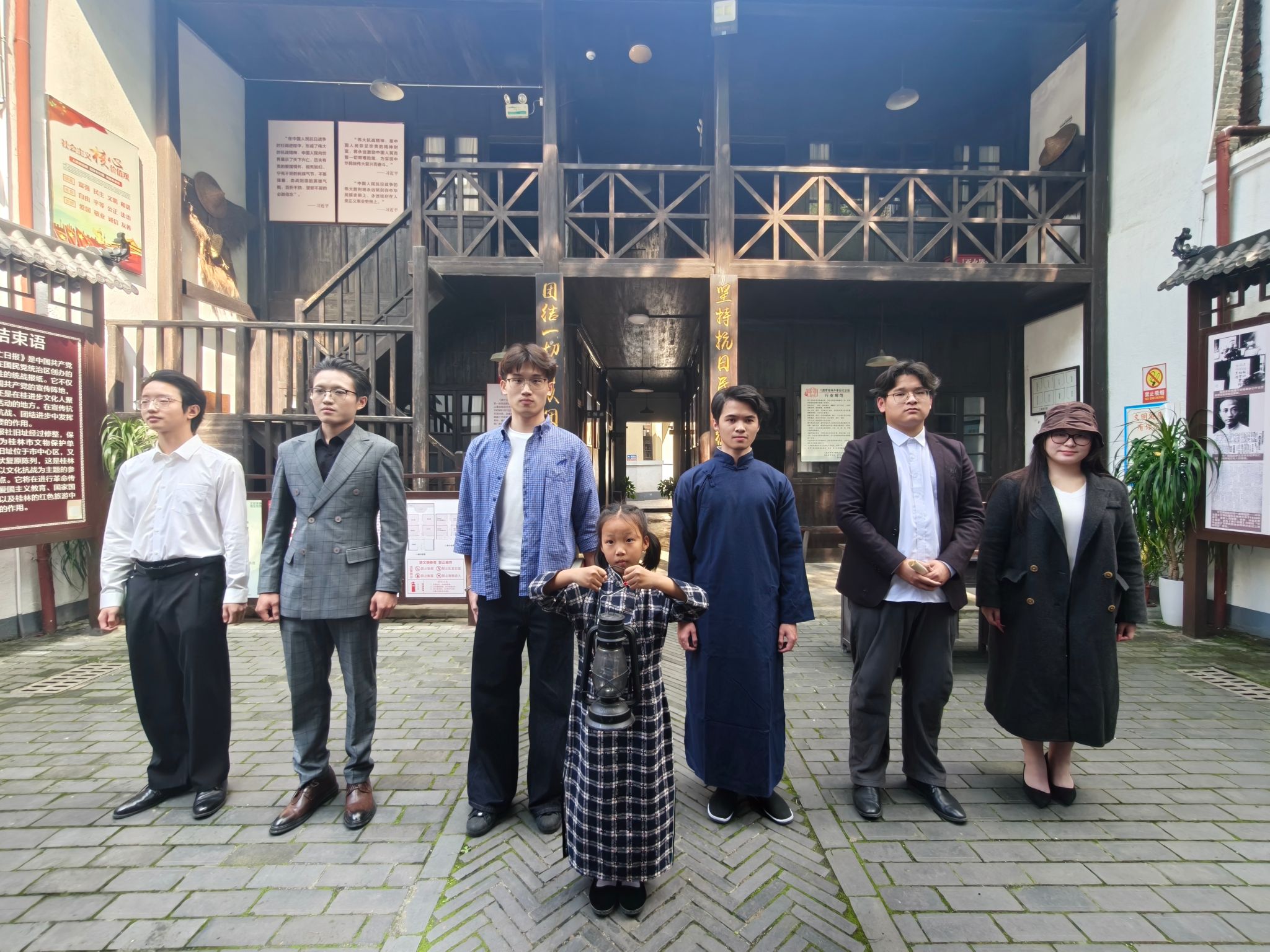 创作期间,师生多次前往救亡日报社旧址实地调研,触摸历史肌理,深挖人物故事,因地制宜设计舞台走位与肢体语言,让表演与历史场景深度融合。 排练过程中,同学们潜心钻研台词韵律,揣摩人物心理,反复打磨语气、节奏与情感张力,把对历史的敬畏融入每一句朗诵、每一个动作。为真实还原革命先辈精神风貌,大家主动查阅史料、观看影像资料,将专业所学的语言表达、舞台表现与红色文化传承相结合,以朗诵为骨、以情景为魂,让历史人物从文字中“走出来”,让红色精神在新时代青年的演绎中鲜活可感。 演出在救亡日报社旧址小楼内精彩呈现,历史建筑与红色剧目相得益彰,实现人、情、景高度统一。师生们真挚饱满的表演、铿锵有力的台词、富有张力的舞台呈现,将文化抗战的热血与坚守展现得淋漓尽致。当张曙用生命守护乐谱、先辈们齐声呐喊“人在,阵地在”时,现场观众无不动容,掌声经久不息。