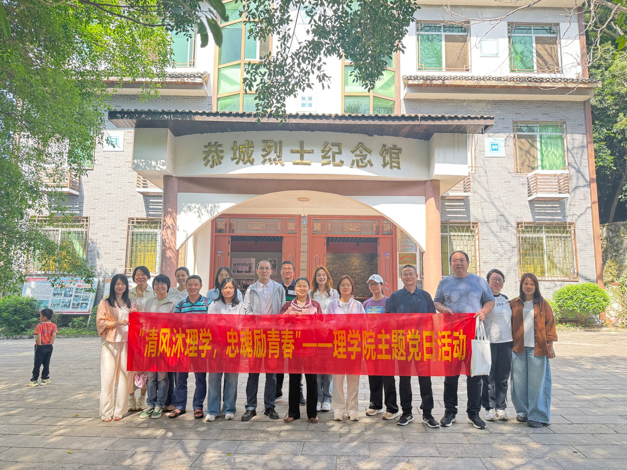 在恭城县烈士纪念馆,党员教师认真聆听讲解,了解革命先烈为民族独立和人民解放英勇奋斗的事迹。珍贵的历史照片与革命文物,生动再现了峥嵘岁月。在烈士纪念碑前,全体党员重温入党誓词,表达不忘初心、牢记使命、传承红色基因的坚定决心。