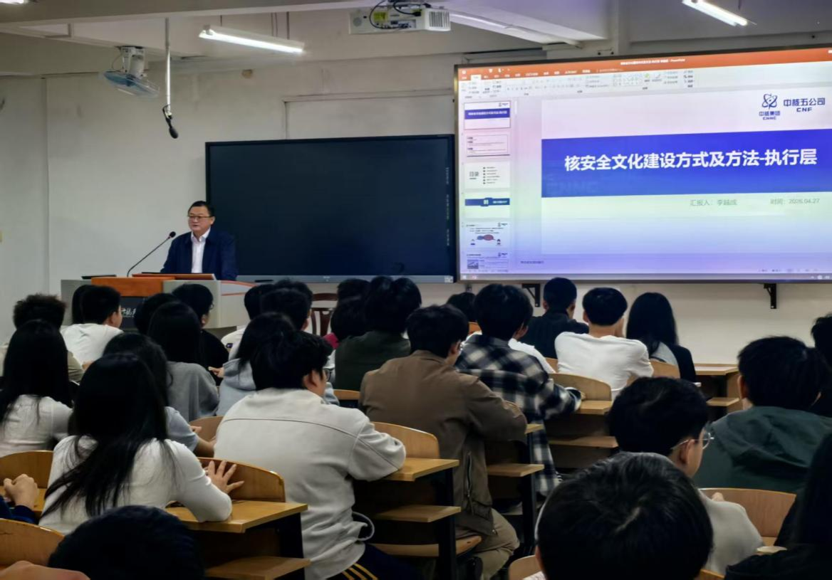 在核安全文化方面,专家解读了其国际权威定义与发展历程,传递了“理性、协调、并进”的中国核安全观,强调核安全是国家安全的重要组成部分,是核能事业发展的生命线。他还深入讲解了核安全文化的八大特征与分层责任,明确了决策层、管理层、执行层各自的安全职责,帮助测控专业学生提前理解岗位安全要求。