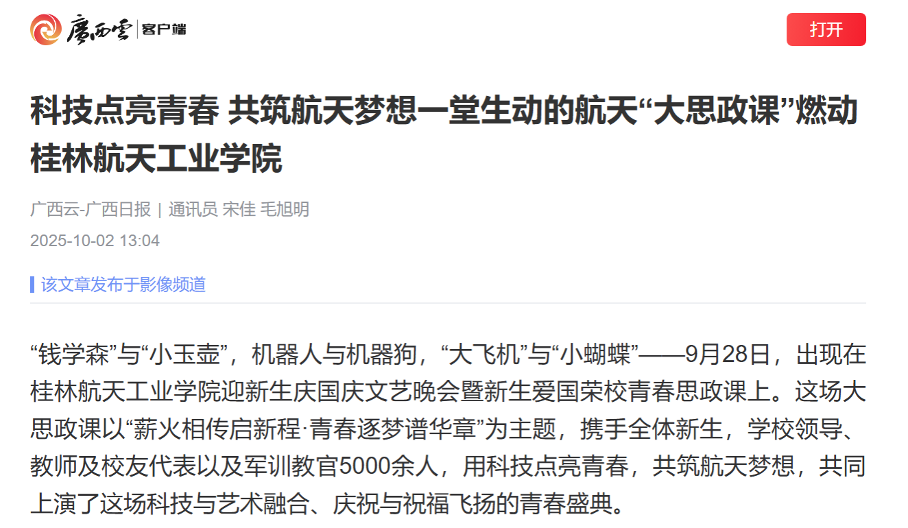 【广西日报-广西云】科技点亮青春 共筑航天梦想 一堂生动的航天“大思政课”燃动桂林航天工业学院