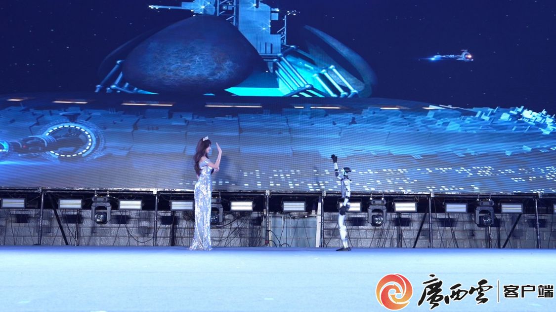 “钱学森”与“小玉壶”,机器人与机器狗,“大飞机”与“小蝴蝶”——9月28日,出现在桂林航天工业学院迎新生庆国庆文艺晚会暨新生爱国荣校青春思政课上。这场大思政课以“薪火相传启新程·青春逐梦谱华章”为主题,携手全体新生,学校领导、教师及校友代表以及军训教官5000余人,用科技点亮青春,共筑航天梦想,共同上演了这场科技与艺术融合、庆祝与祝福飞扬的青春盛典。