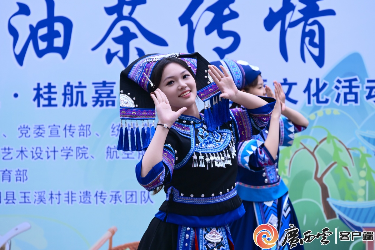 “广西三月三·桂航嘉年华”活动主会场现场,来自灌阳的非遗传承人带来油茶体验 华成涛 摄 分会场与各区域的体验活动亦高潮迭起:在一站式社区“快乐厨房”,师生们亲手制作五色糯米饭、打油茶、包粽子,在舌尖品味春色;问天楼图书馆前,跳竹竿、抛绣球等民族体育项目热火朝天;南北校区食堂门口,民族歌舞快闪瞬间将校园氛围拉满;而在“情暖三月三·民族大团圆”铸牢中华民族共同体意识主题晚会上,走秀《花漾诗篇·繁花逐光》以民族服饰与现代审美的交融,生动诠释了中华文化的多彩与包容。