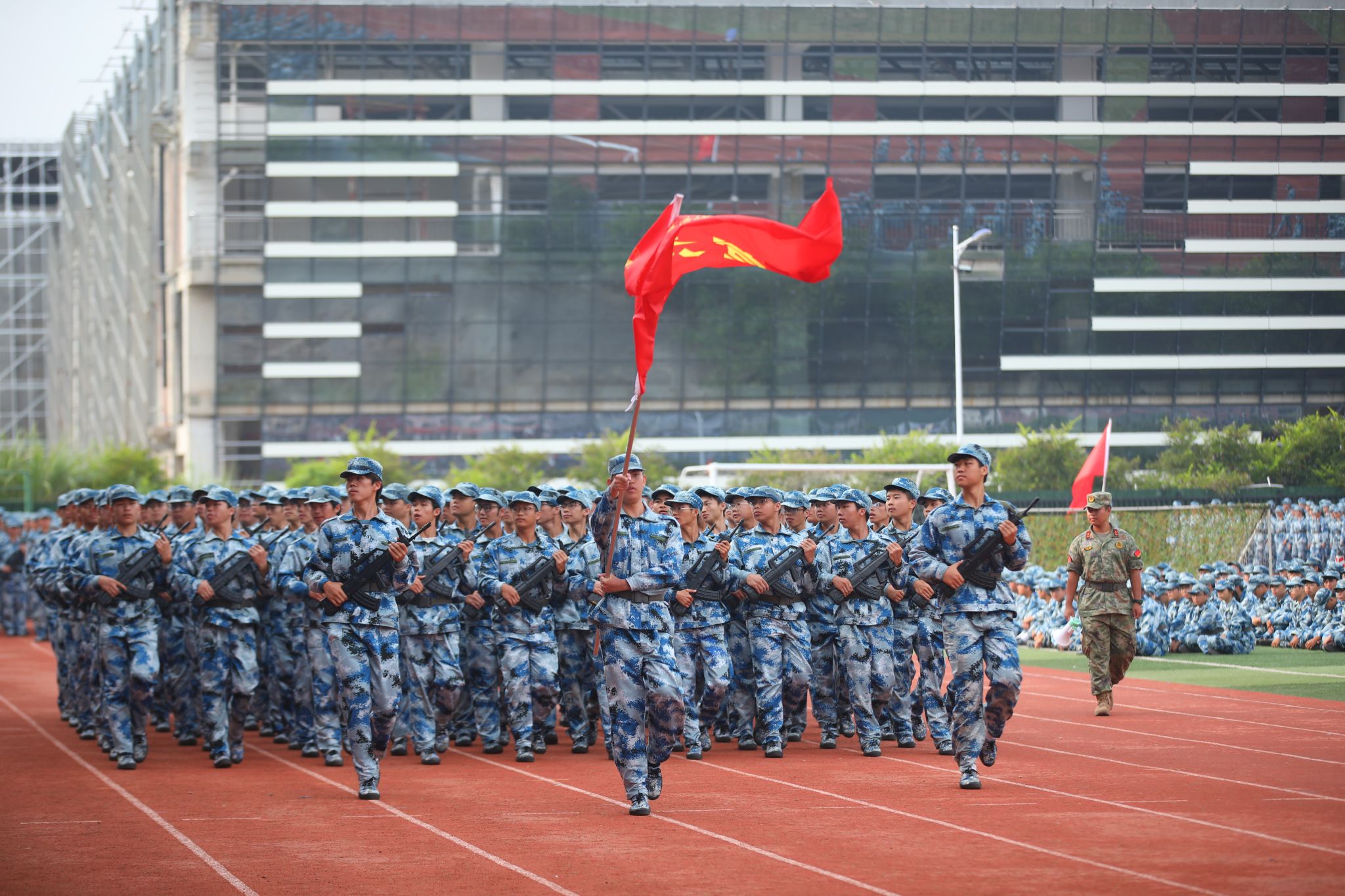2025级学生军训成果展示暨军训总结表彰大会在雄壮的国歌声中正式拉开帷幕。伴随着分列式进行曲的铿锵节奏,分列式展示正式开始。三十九个分列式方阵喊着嘹亮的口号依次通过主席台,他们步伐坚定,身姿挺拔,目光坚毅,精神抖擞,展现着青春活力与拼搏精神。