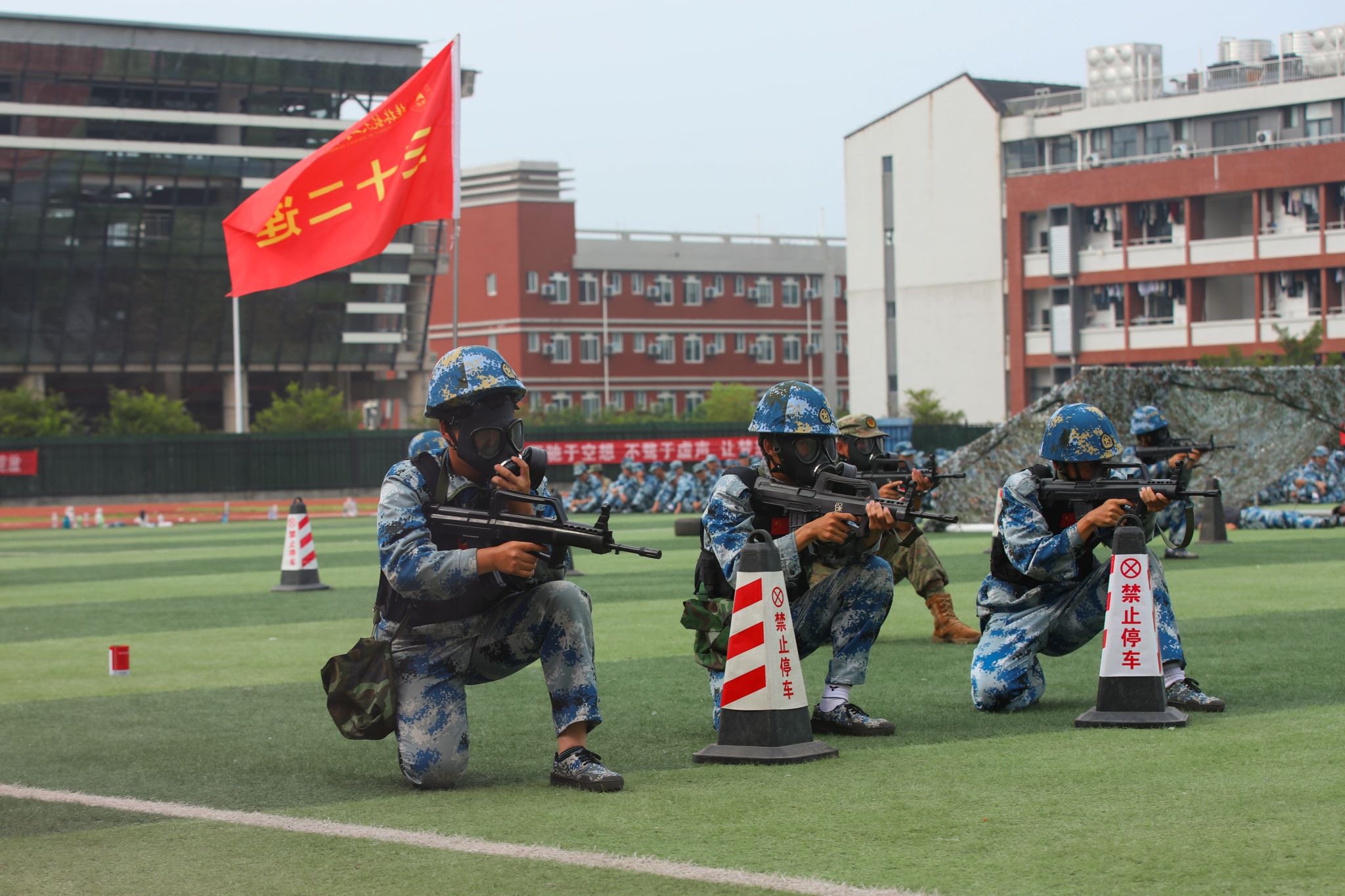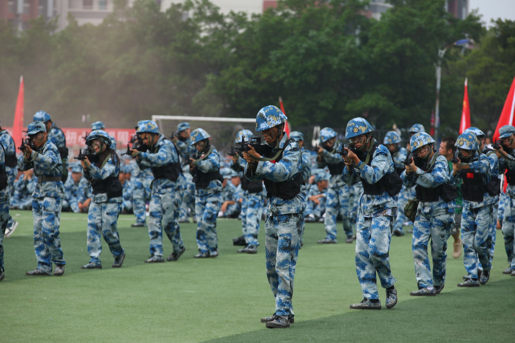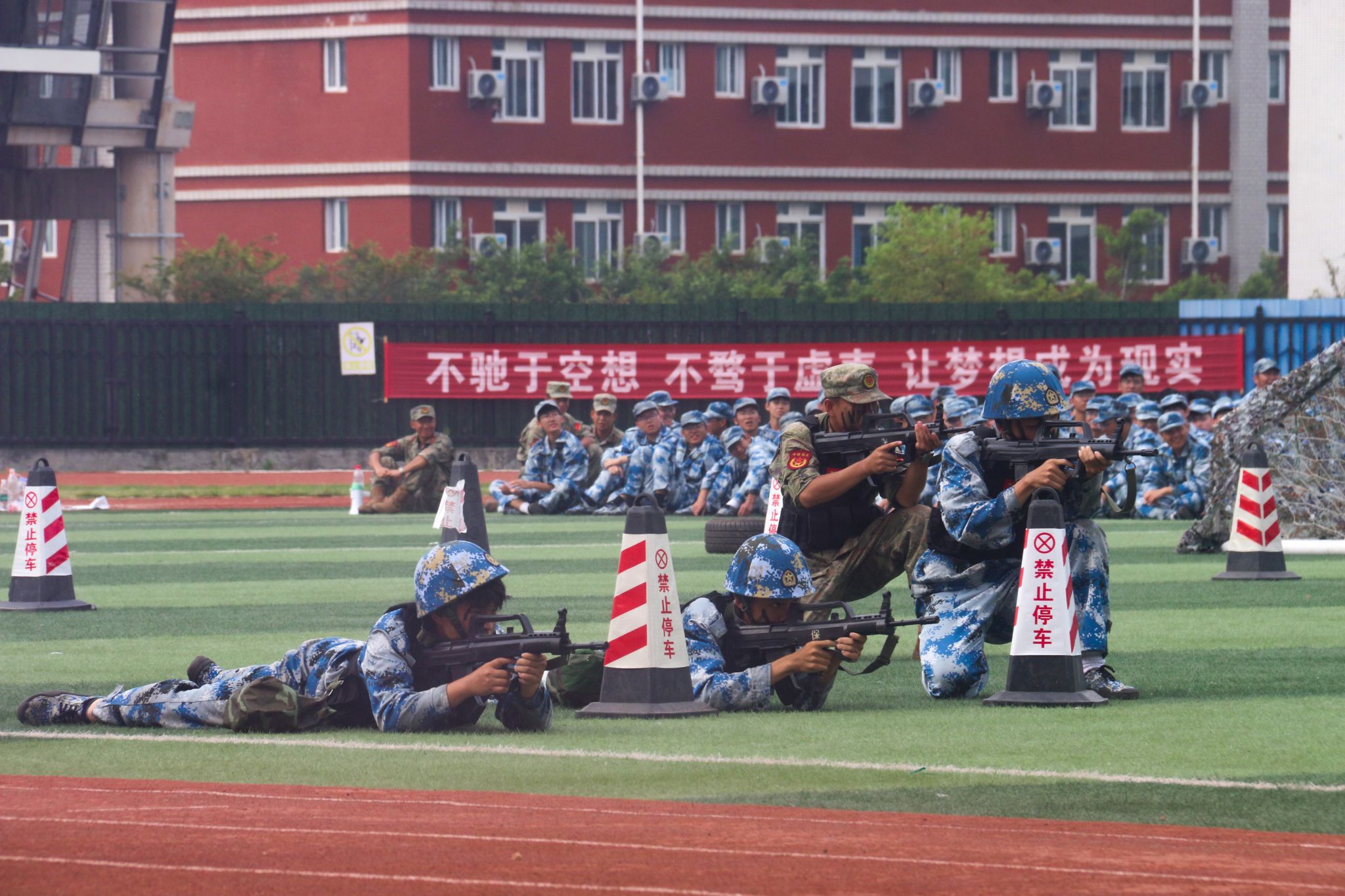 分列式后,依次进行了军体拳、刺杀操、擒敌拳、匕首操、战术展示等五个科目展示,同学们动作整齐刚劲,眼神坚定果敢,战术配合紧密,顿时成为全场焦点,也赢得了现场师生们热烈的掌声。