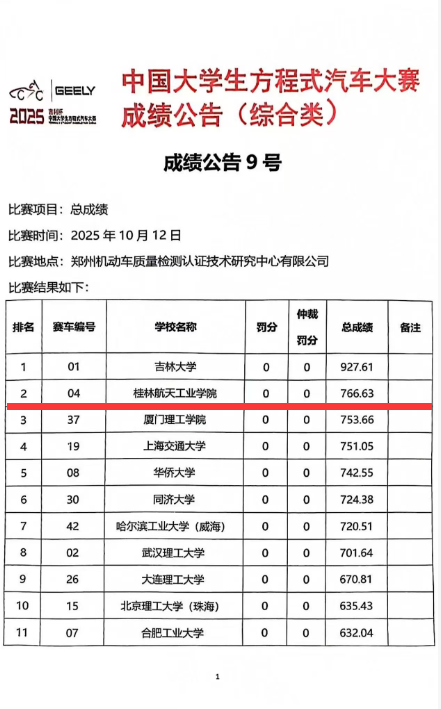 10月8日至12日,由中国科学技术协会指导、中国汽车工程学会与郑州市人民政府联合主办的2025“吉利杯”中国大学生方程式汽车大赛在郑州汽检中心智能网联汽车测试基地成功举办。作为国内汽车工程领域的最顶级赛事,本次大赛汇聚了吉林大学、哈尔滨工业大学、上海交通大学、湖南大学、武汉理工大学、俄罗斯乌法科技大学等70余所高校的精英车队报名参赛,竞争激烈程度创历年新高。