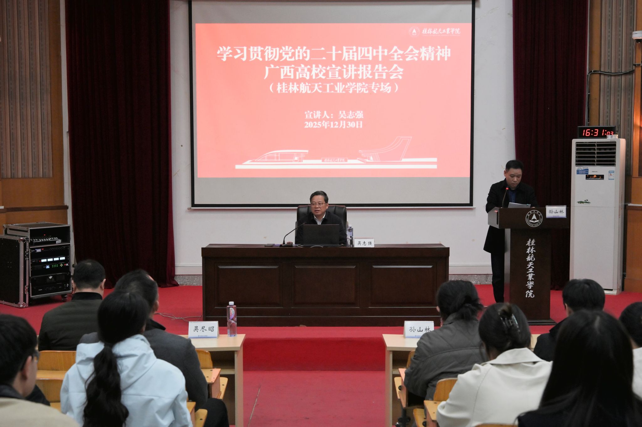 学校党委副书记孙山林在总结时指出,吴志强教授的报告立意高远、重点突出、贴合实际,为学校深入学习贯彻党的二十届四中全会精神提供了有力指引。他强调,学校要持续深化理论学习,将全会精神与习近平总书记关于教育的重要论述结合起来,与学校航天特色发展定位贯通起来,把学习成果转化为推动学校高质量发展的具体举措,以实干实绩助力教育强国建设、广西经济社会发展,为培养更多高素质应用型人才筑牢根基。