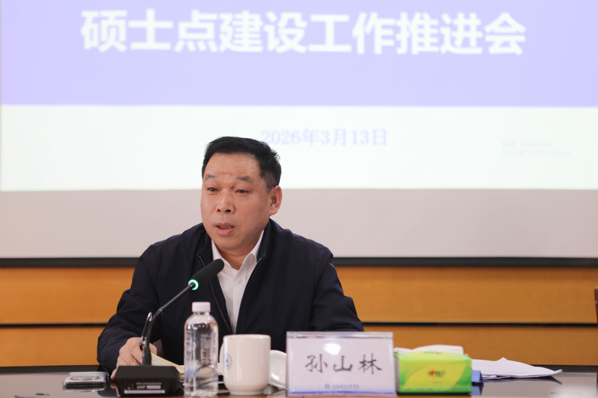 孙山林在总结讲话中对前期硕士点建设工作取得的阶段性成效给予充分肯定。围绕下一阶段重点工作,他提出四点明确要求:一是进一步凝练学校优势特色,紧密对接学校发展定位与国家和区域发展战略需求;二是严把数据质量关,对简况表及相关申报材料中的各项数据进行全面复核和充分论证,确保数据来源可溯、真实准确、逻辑严密;三是强化协同联动与学习交流。对内加强各部门沟通协作,确保信息高效同步、工作衔接顺畅,对外主动对接兄弟院校,深入开展学习交流;四是健全协同联动机制,各职能部门与学位点要强化责任担当,加强沟通对接,共同梳理完善材料,确保高质量完成申报材料的编制工作。