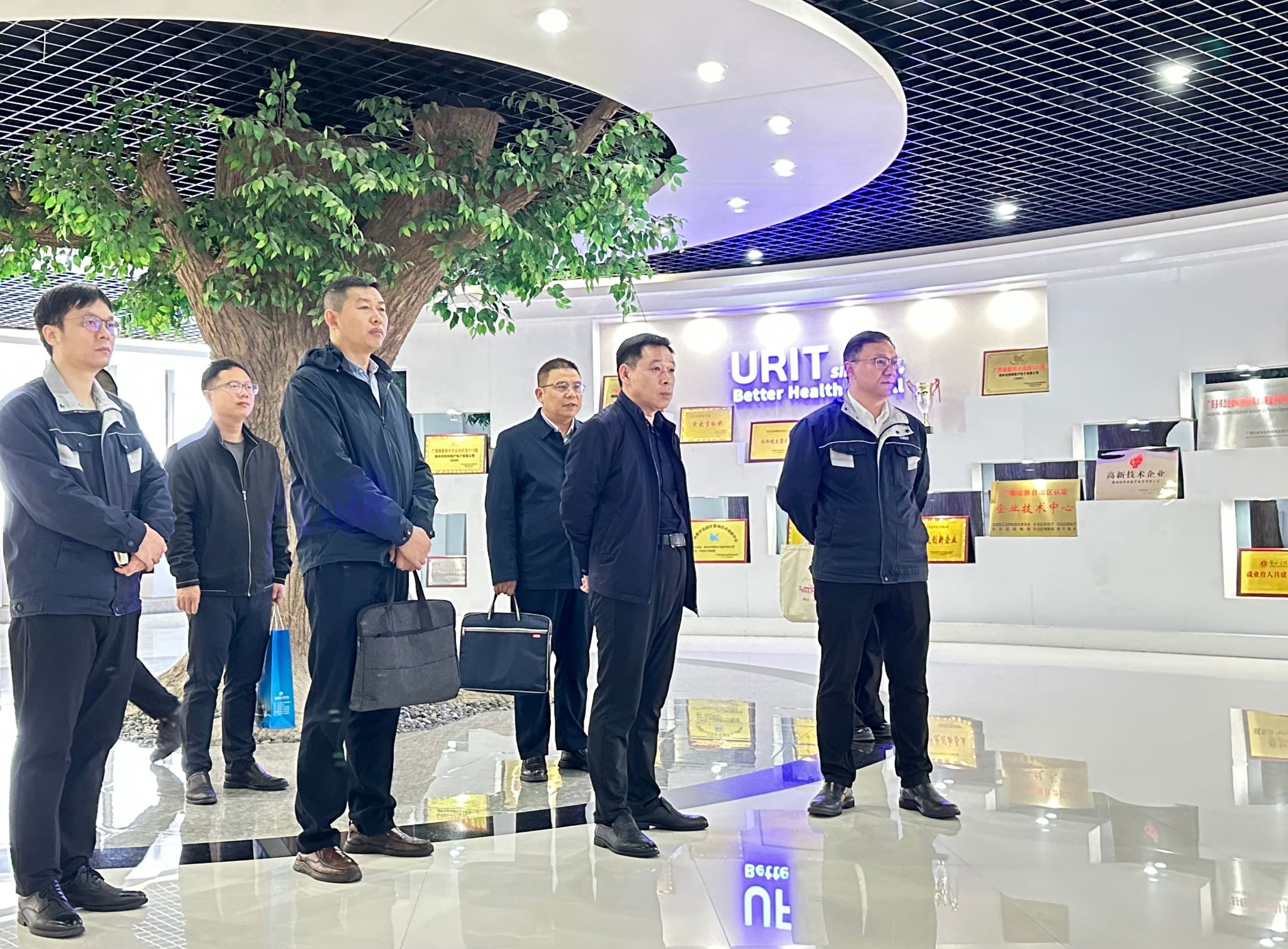 在桂林优利特电子集团有限公司,孙山林参观完企业展厅之后,与企业常务副总裁唐雪辉等接待组开展深入交流。他高度赞扬企业在医疗领域内取得的成就,希望双方在人才供需、青年职工联谊、职工住房改善等领域加强合作。